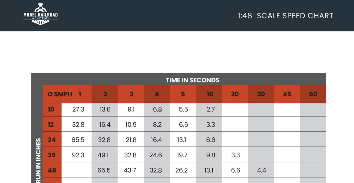 Scale speeds can sometimes be a tough concept for new and even intermediate modelers. Most model trains are operated unrealistically fast. This O scale chart should help you operate your trains in a more natural fashion.