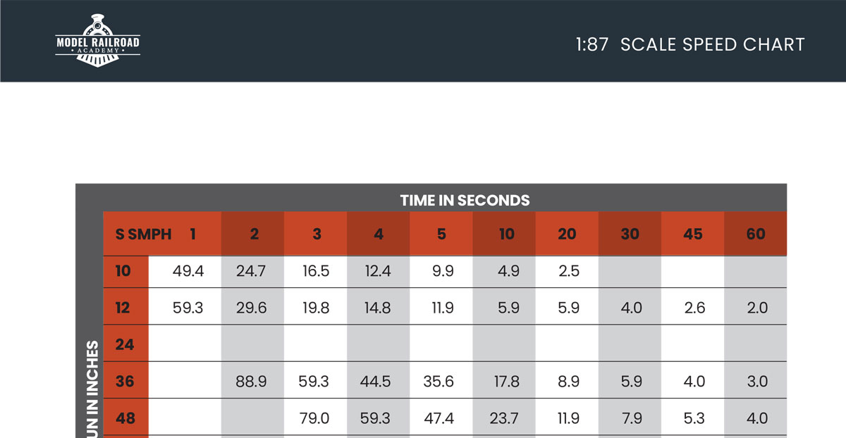 Scale speeds can sometimes be a tough concept for new and even intermediate modelers. Most model trains are operated unrealistically fast. This HO scale chart should help you operate your trains in a more natural fashion.