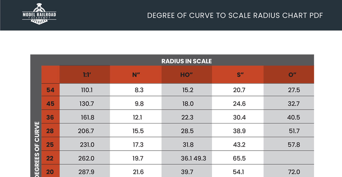 This chart will help you compare real railroad curvature with your model curves. Real railroads need much more gradual curves than we modelers use. A ten degree curve is sharp for a real main line railroad and model curves a generally much tighter that that. You are going to want to check this out!